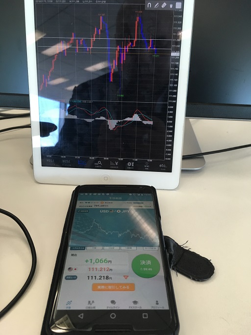 チャートが貧弱なので、私はヒロセ通商の「ライオンFX」のデモトレードアプリのチャートをiPadで表示して、手元のスマホのかるFXを操作しています。